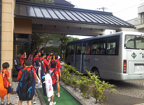 10给予团体免费接送服务。对于入住2日以上的合宿团体,我们提供到各种体育锻炼点、乘车点、车站等的免费接送服务。(两辆酒店专用小型巴士和行李接送车),可以根据团体人数随机应变。