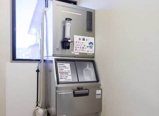 12大型制冰机。对于合宿团体,我们新配置了合宿专用大型制冰机,共有三台,可在房间和茶话会使用,也可免费带冰去运动场和球场,非常方便。