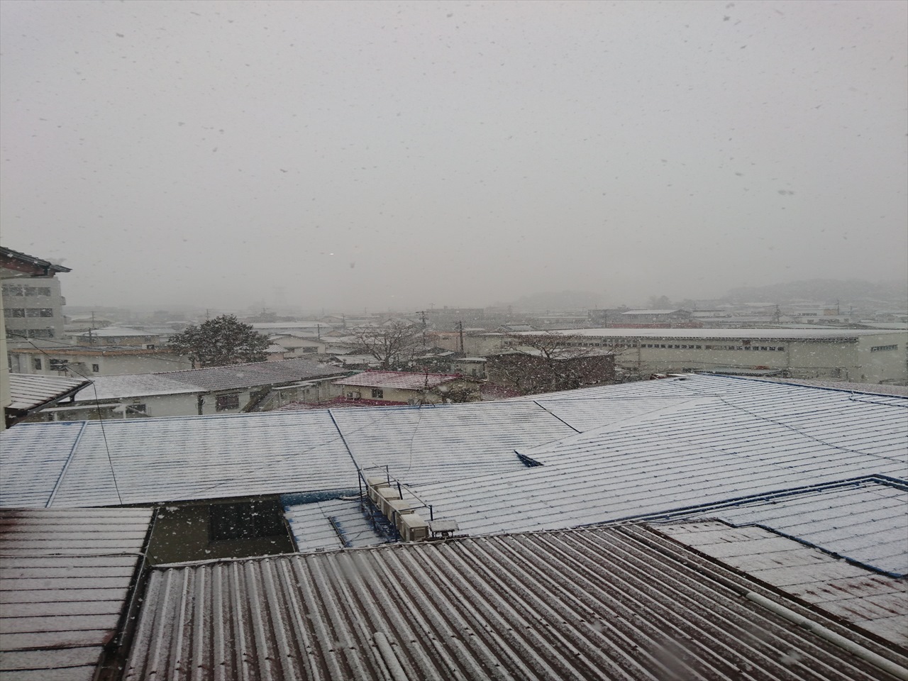 予報通り、今朝から雪が降っています。