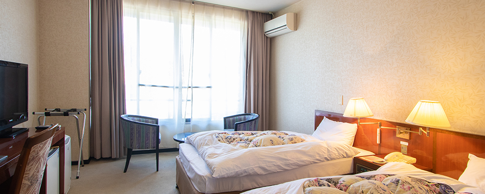 트윈 베드에서 휴식을 취하고, 방에서 푸른 자연의 경치를 즐기고 피로와 스트레스를 날려 버리세요.
