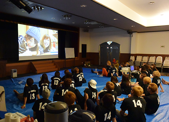 14관내 시어터 룸이 있습니다.대형스크린으로 연회장이 시어터룸으로 변신합니다. 연습풍경이나 시합을 대형 스크린으로 다시 볼 수가 있어 합숙을 더욱 충실하게 하는데 도움이 됩니다. 150인치 스크린으로 영상등을 다이나믹하게 상영합니다.