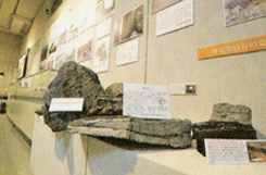 19.松尾の埋没木川底から発見された9万年前の巨木。表面が焼け焦げ、阿蘇山巨体噴火のすさまじさを物語る。